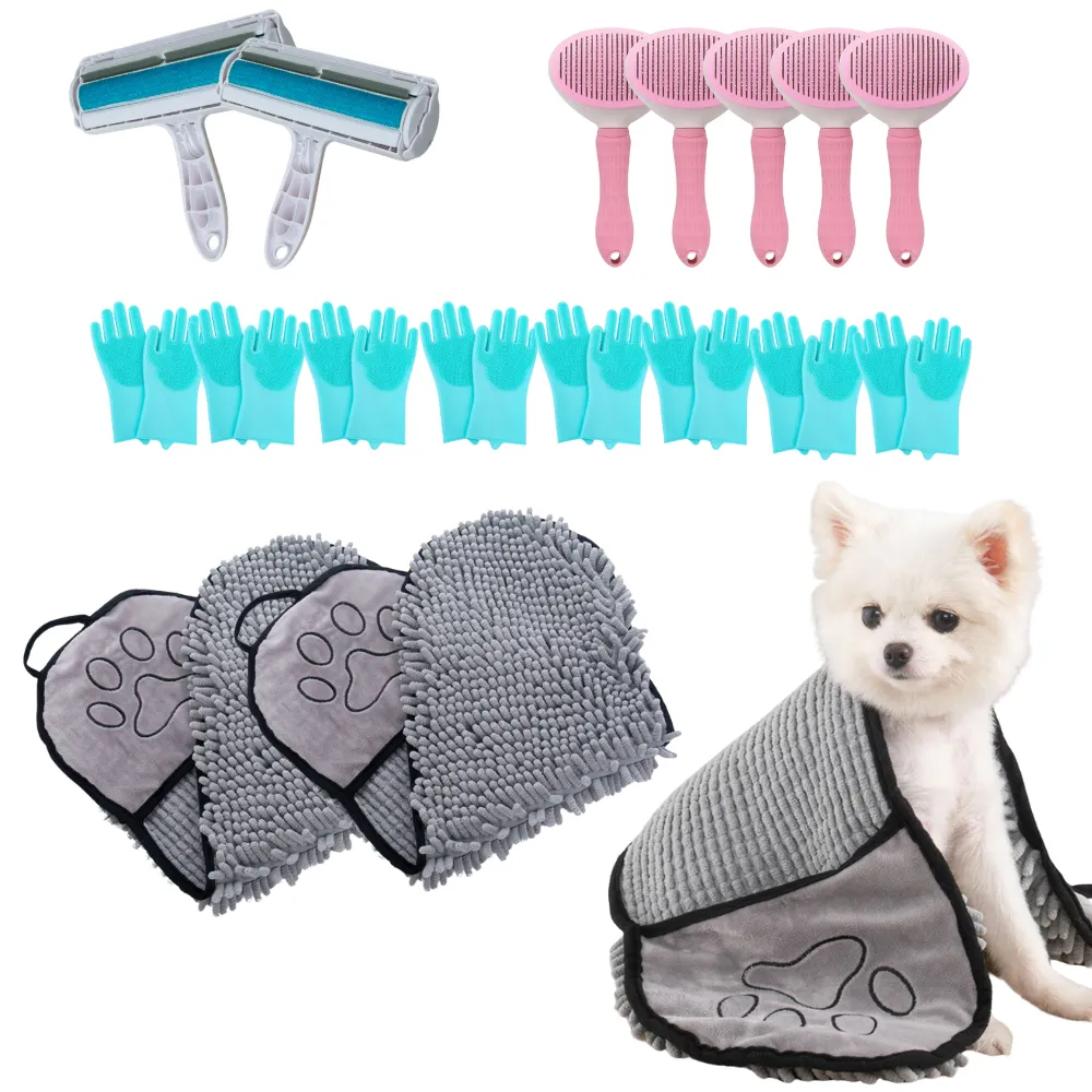- Includes lint rollers quick dry towels grooming gloves and brushes for basic grooming needs.