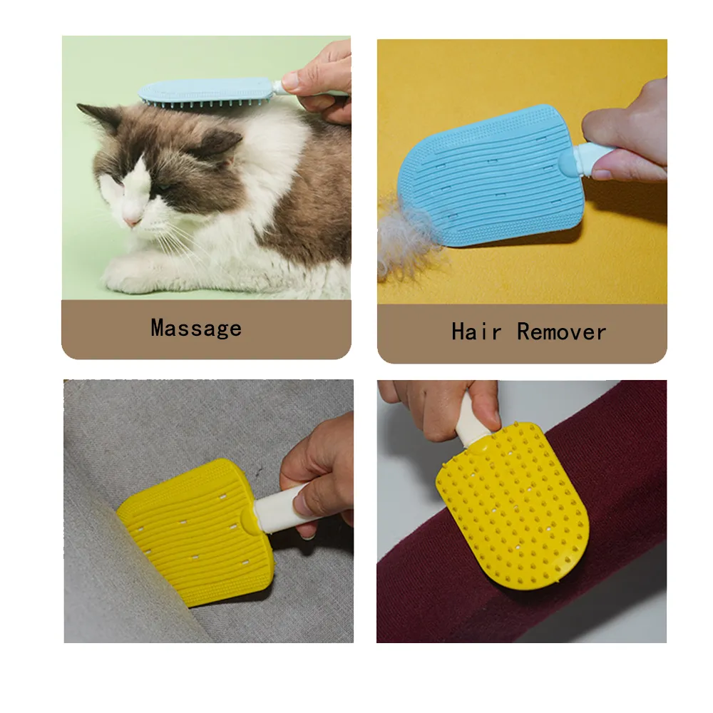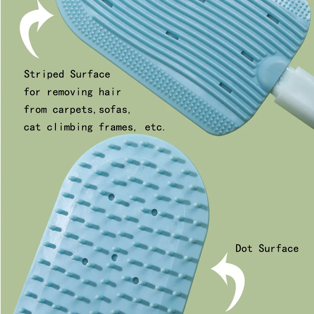 - Dual-Side Design: One side features stripes for removing pet hair from furniture and fabrics, while the other side has dots for daily grooming and fur removal from long fabrics like blankets and beds.