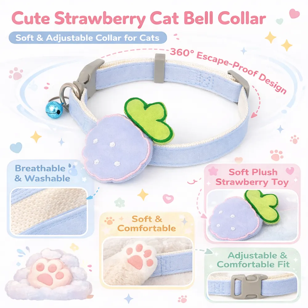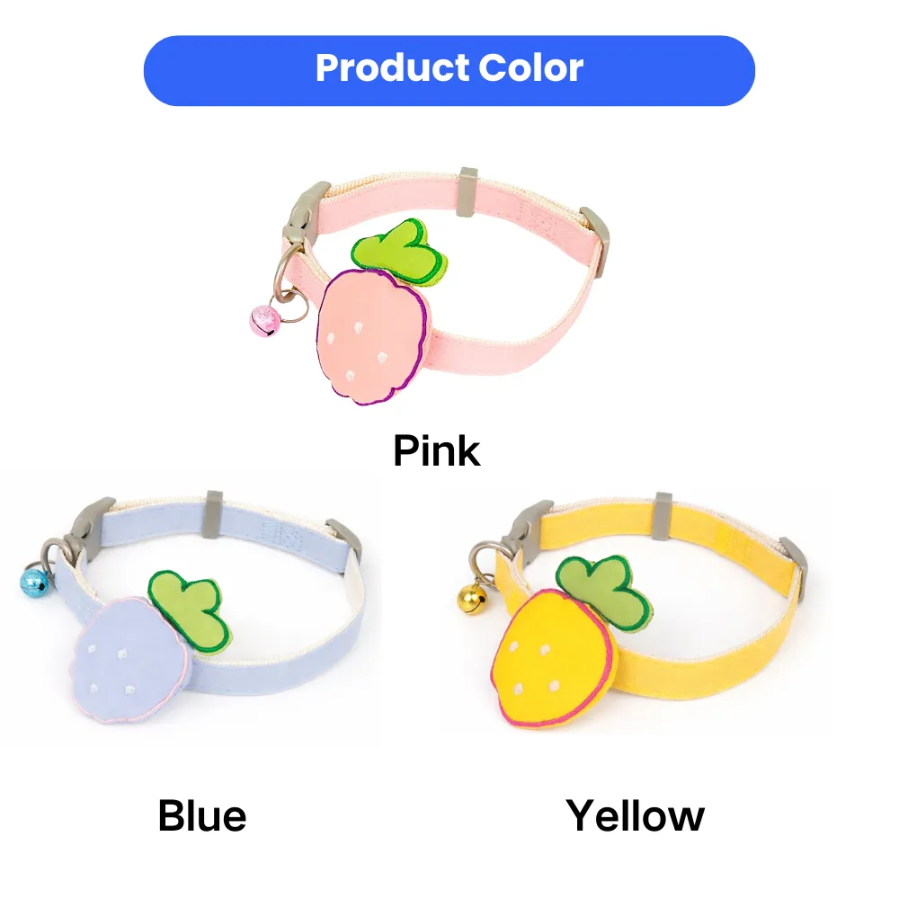 1.Vibrant Fruit-Inspired Design: The Petfairs 3 Color Option Adorable Fruit Design Pet Collar features a cheerful, fruit-themed pattern, bringing a playful and refreshing touch to pets' wardrobes with bright colors that make pets stand out.