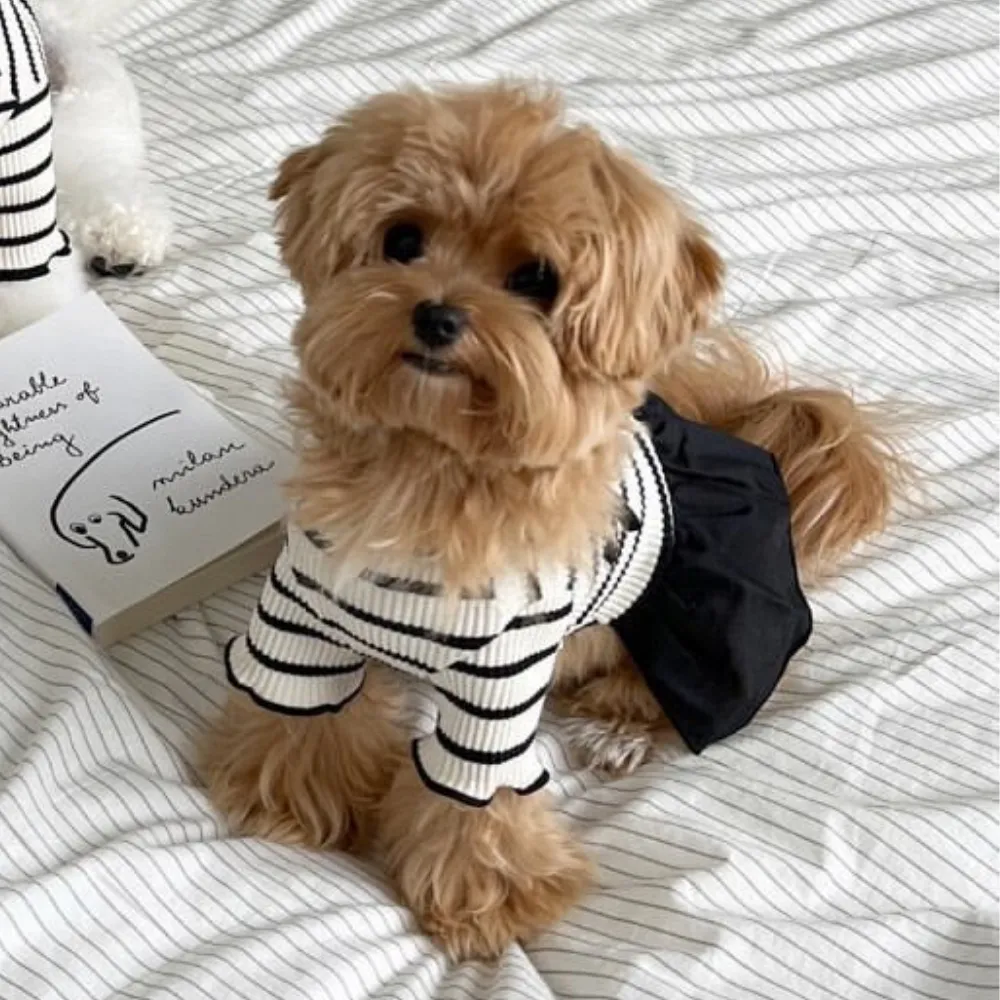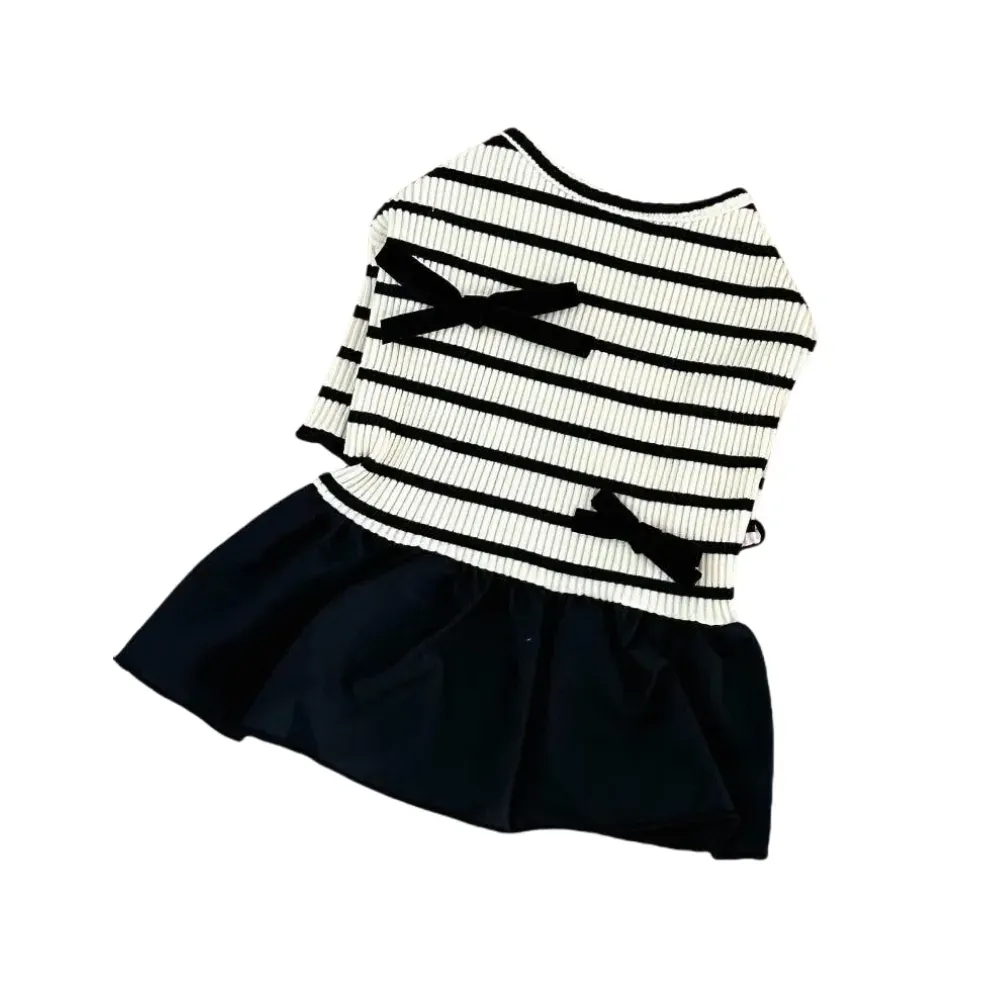 This breathable striped dog dress combines minimalist style with comfort, featuring lightweight fabric, non-irritating seams, and adjustable fasteners for easy wear—ideal for keeping pets cool and stylish during daily walks or special occasions while ensuring easy care with machine-washable durability.