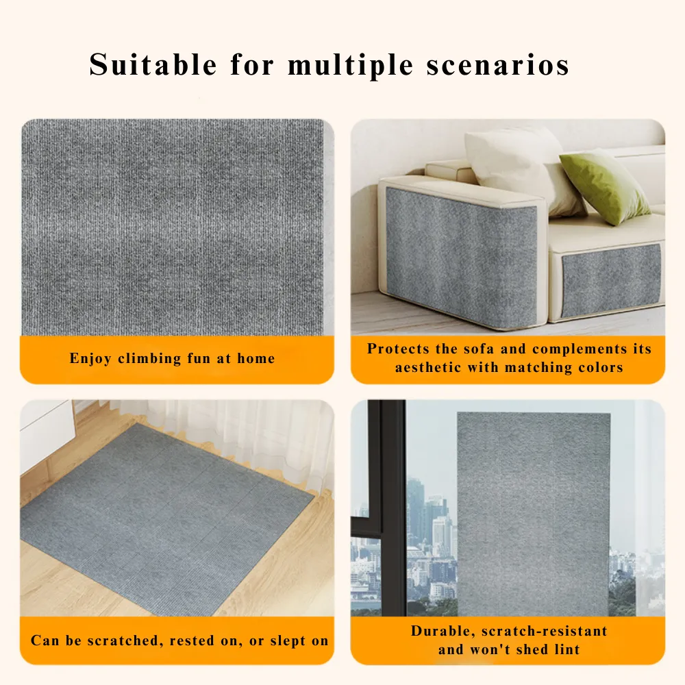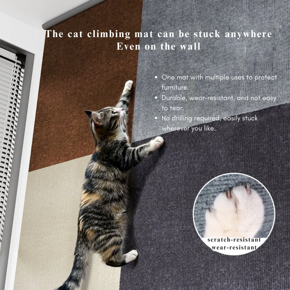 1. MultiFunctional Cat Scratcher: This versatile cat scratching board allows cat to scratch, climb, and play all in one. It can easily be mounted on walls or furniture to satisfy cat’s scratching needs and provide endless entertainment.2. Durable, Self-Adhesive Design: Made from tough, durable materials, this cat scratcher comes with built-in self-adhesive backing, making it easy to attach to any smooth surface without leaving marks when removed.3. Space-Saving Design: Ideal for apartments, offices, or smaller spaces, this wall-mounted scratching board lets cat climb and scratch without taking up valuable floor space.4. Safe & Eco-Friendly Materials: Crafted from non-toxic, eco-friendly materials, this scratching pad is completely safe for cat to use, giving pet owners peace of mind while they scratch and climb.5. Easy Installation & Removal: The self-adhesive backing allows for quick installation without the need for tools or drilling, and it can be removed cleanly without leaving any residue—perfect for renters or anyone who likes to move things around.