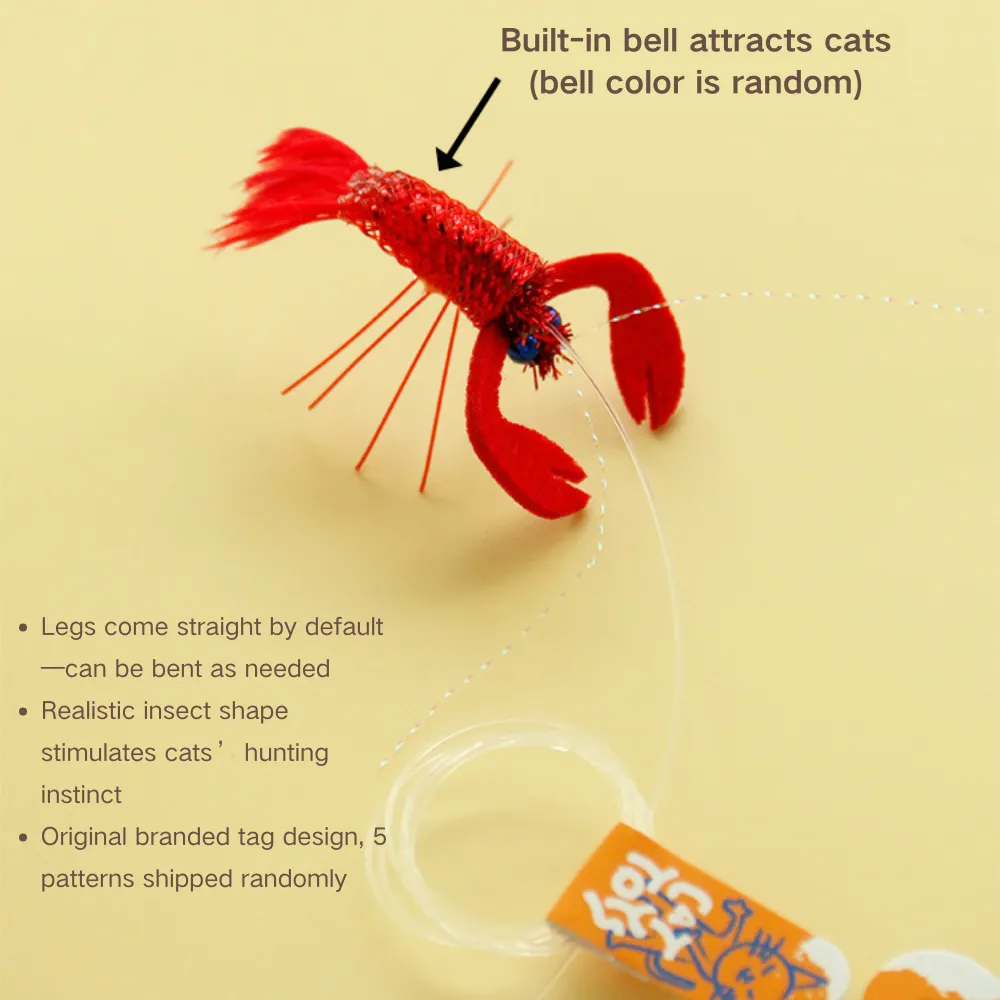 Realistic insect wand refills with bells stimulate hunting instincts and offer a durable, bite-resistant play experience.