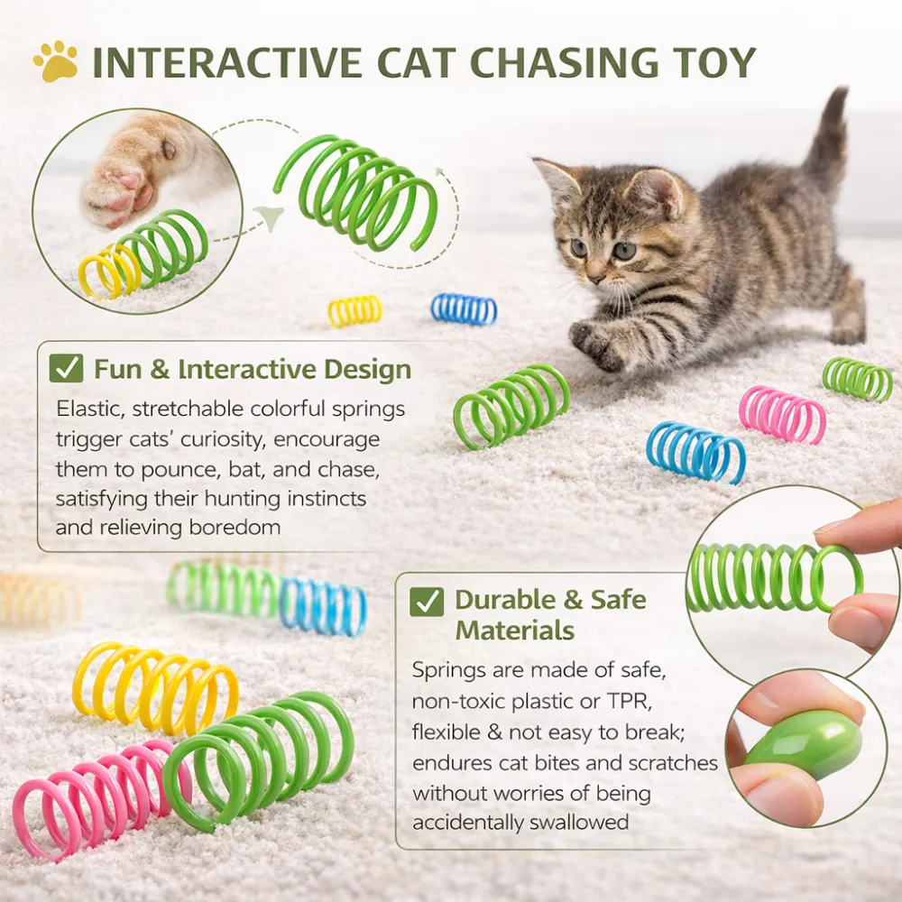 A durable, safe, and interactive spring cat toy set, perfect for engaging pets and a great addition to your product lineup.
