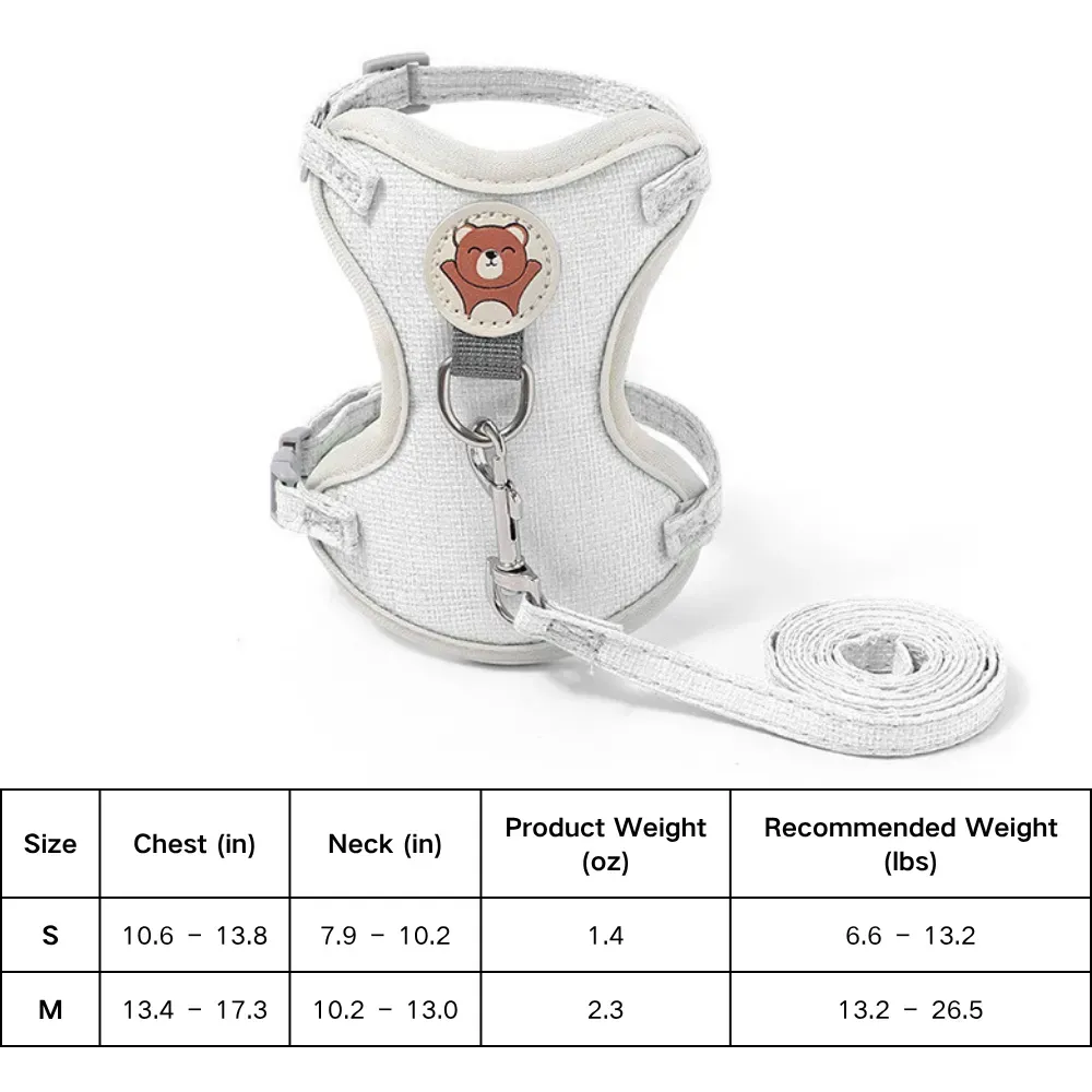 Escape-proof, adjustable harness with a bear print design, offering comfort, durability, and safety for cats and small dogs.