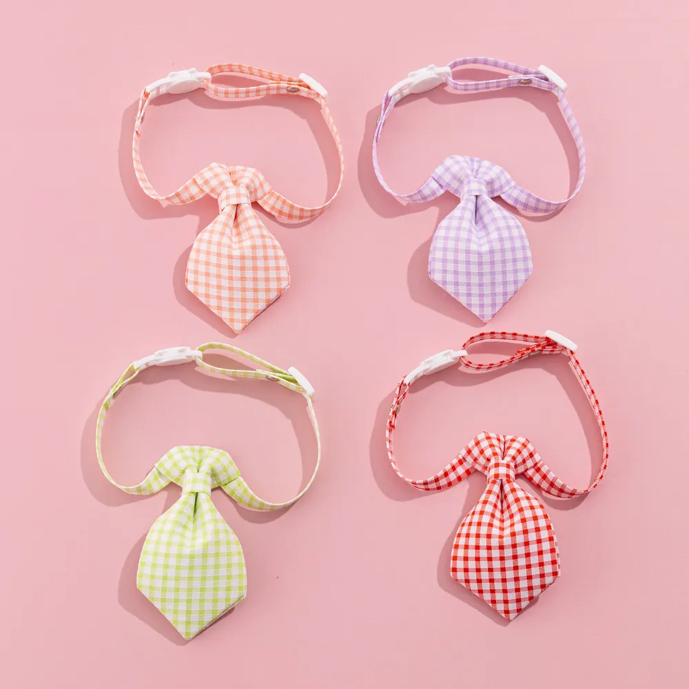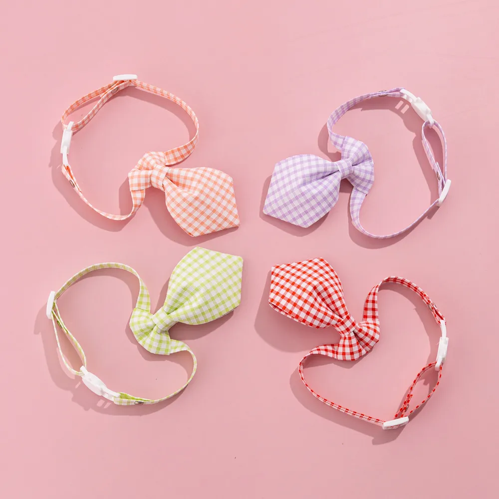 Cute plaid bow tie collar with a safety buckle, perfect for small dogs and cats, combining fashion, comfort, and security.