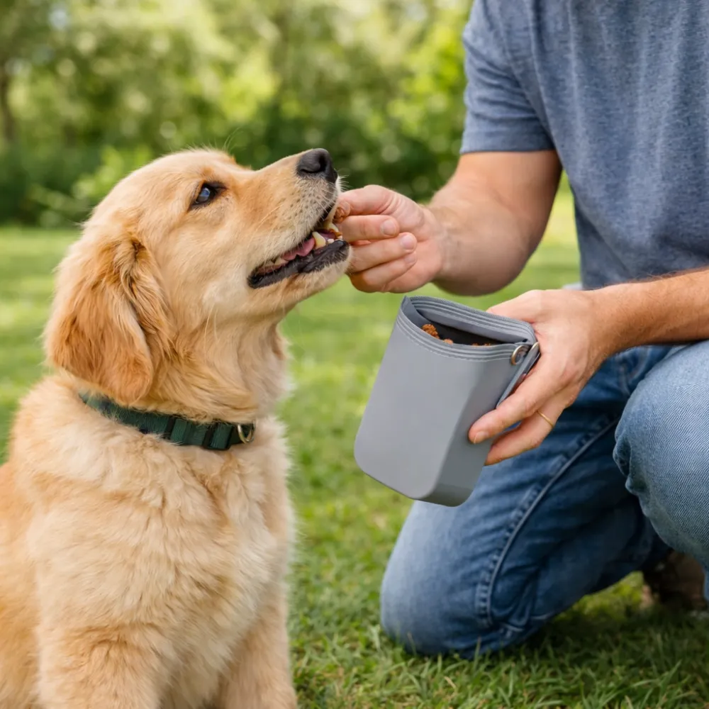 5.Perfect for Outdoor Pet Training: Whether it's for rewarding a dog during training sessions or while hiking, the Petfairs Silicone Waterproof Dog Food Bag is an essential tool for outdoor pet care, ensuring easy access to treats and durability in all conditions.