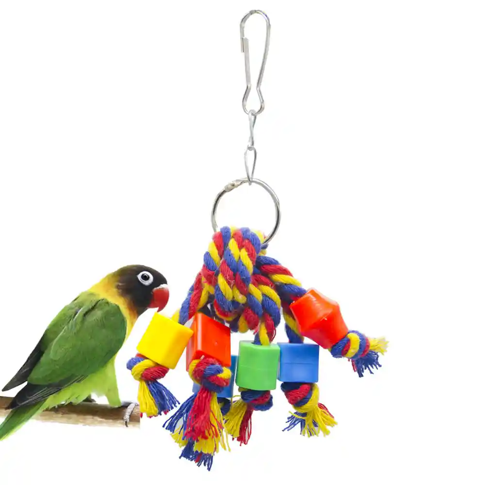 Durable Materials: Made from high-quality, sturdy ropes and durable plastic blocks, this toy is built to withstand the pecking and playing of birds. It ensures long-lasting use, providing pets with hours of entertainment.