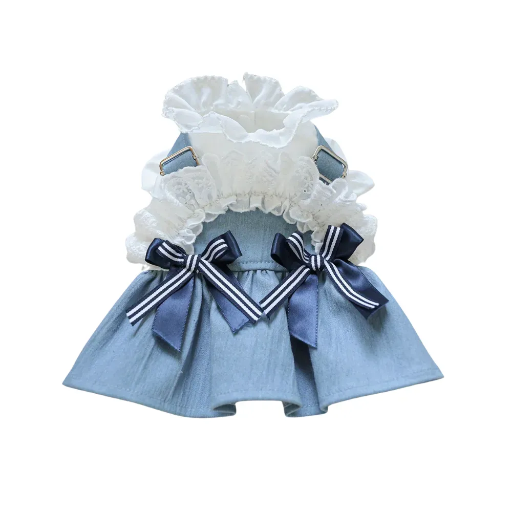 Denim Pet Dress with Bow and D-ring for Dogs and Cats