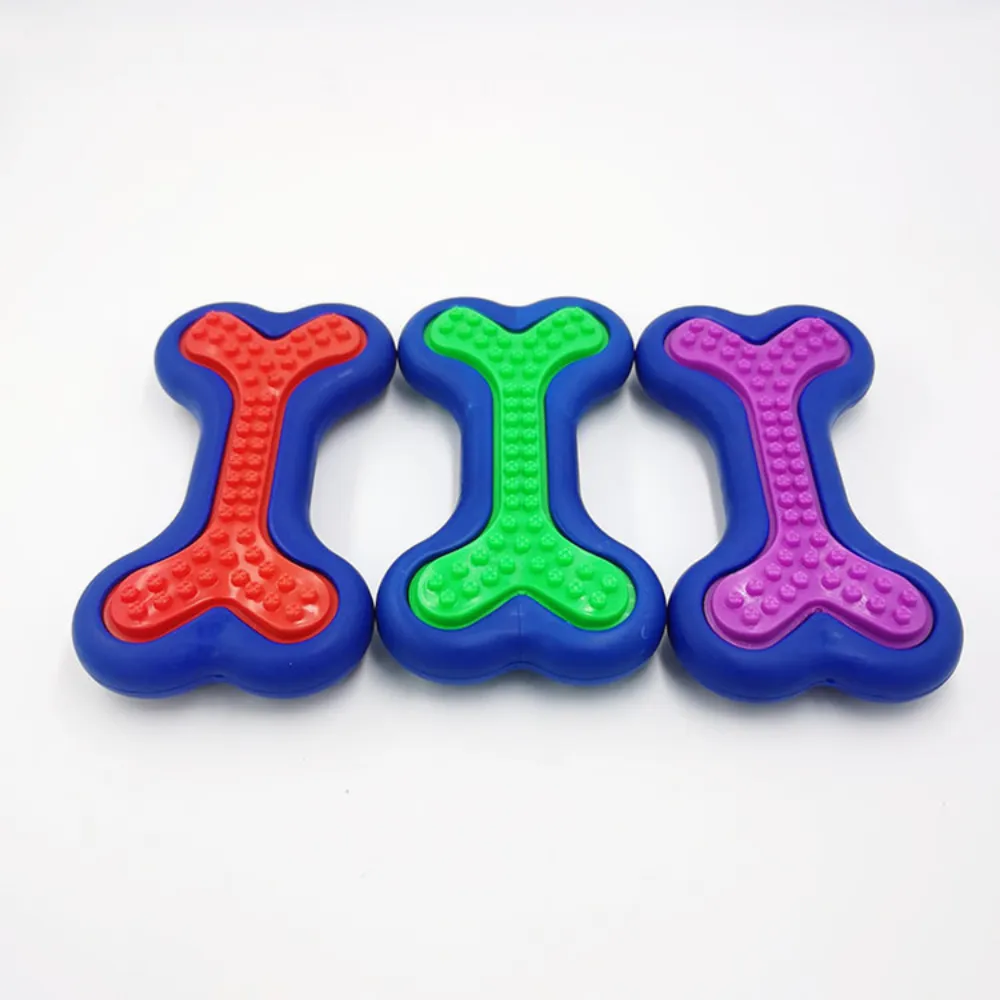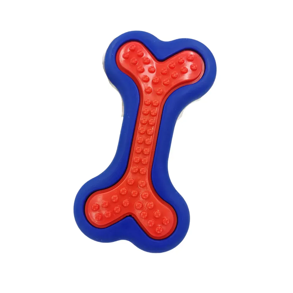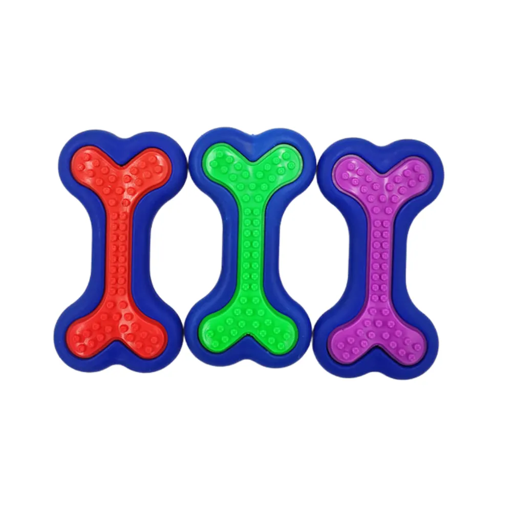 A durable and safe TPR bone-shaped chew toy that helps clean teeth, satisfy chewing instincts, and promote interactive play.